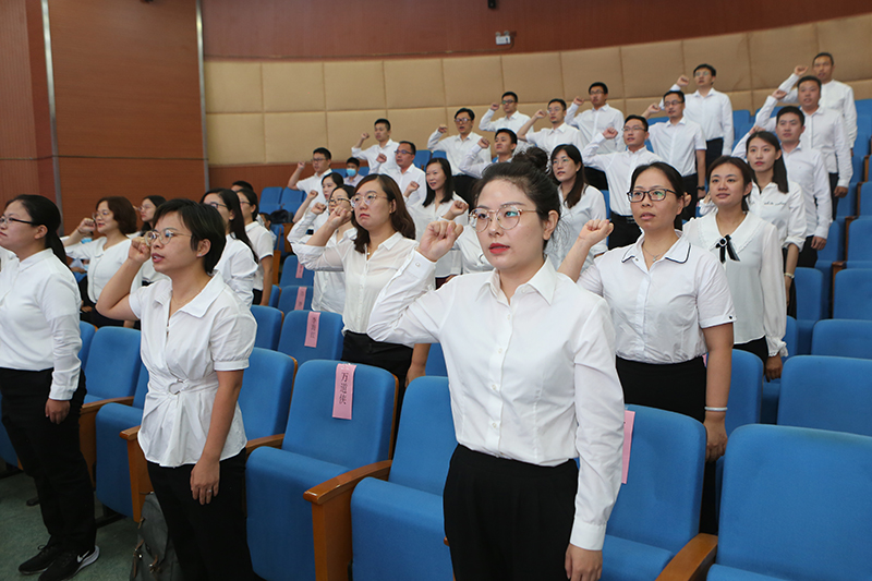颁奖结束后,在山东省高等学校优势学科人才团队培育计划入选团队带头人、计算机科学与技术学院崔超然教授领誓下,新入职的55名教师代表全体起立,面向国旗,举起右手,庄严宣誓,志愿成为光荣的山东财经大学教师,忠诚党的教育事业,遵守教育法律法规,为教育发展和民族振兴努力奋斗。