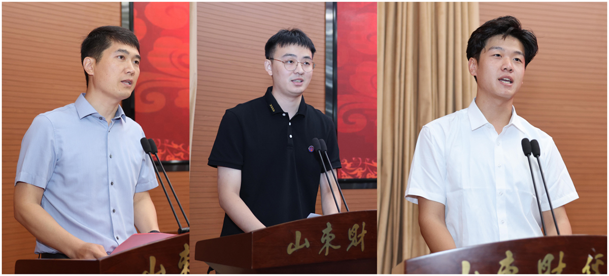 会上,山东省“泰山学者”青年专家、公共管理学院曲衍波教授,新入职教师代表、经济学院颜冠鹏博士,学生代表、管理科学与工程学院丁甲旺分别发言。2023年新入职教师进行了集体宣誓。
